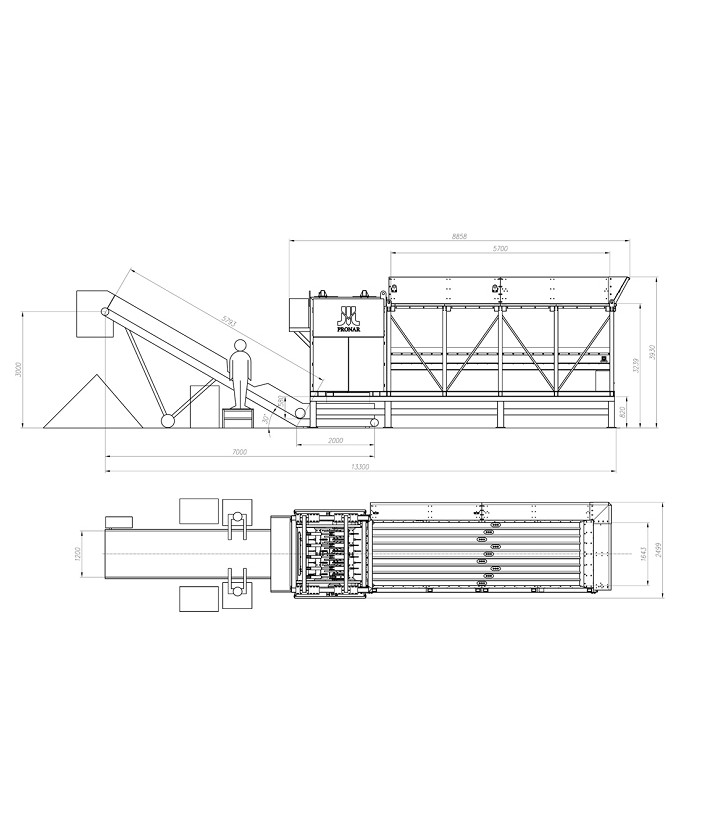 The entire structure has been protected against corrosion by sandblasting and two-layer painting. The machine can be supplied with a discharge feeder, which facilitates further material transport to the next stages of the processing line. The feeder speed can be continuously adjusted using an inverter.
